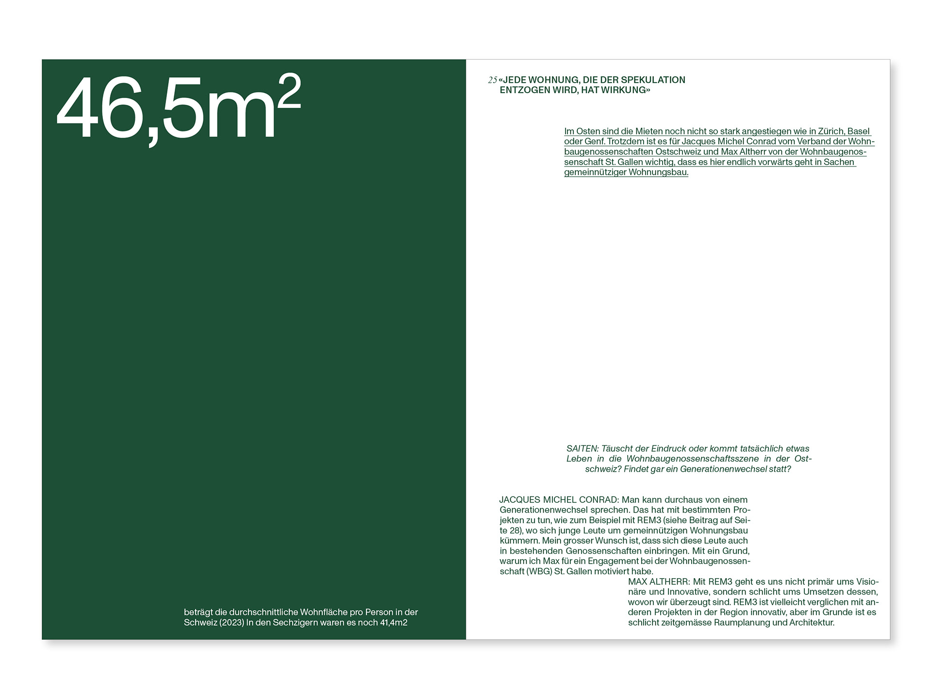 Editorial & Digitorial – als Grundlage standen uns die Inhalte des Saiten Magazins und des Style Magazins zur Verfügung. Die Kontraste konnten nicht eindrücklicher sein. Die Saiten-Berichte zu Nachhaltigkeit, Kultur & Gesellschaft standen dem konsumorientierten Style Magazin gegenüber. Durch meinen Architektur-Hintergrund interessierten mich vor allem die Artikel zum Wohnen, die in beiden Magazinen gewissermassen zu finden waren, auch wenn sie grundverschieden erschienen.